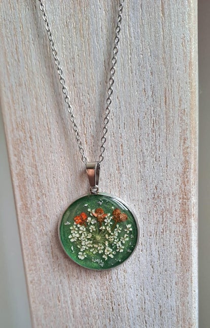 - Pendentif : Fleur de carotte sauvage avec particules argentées