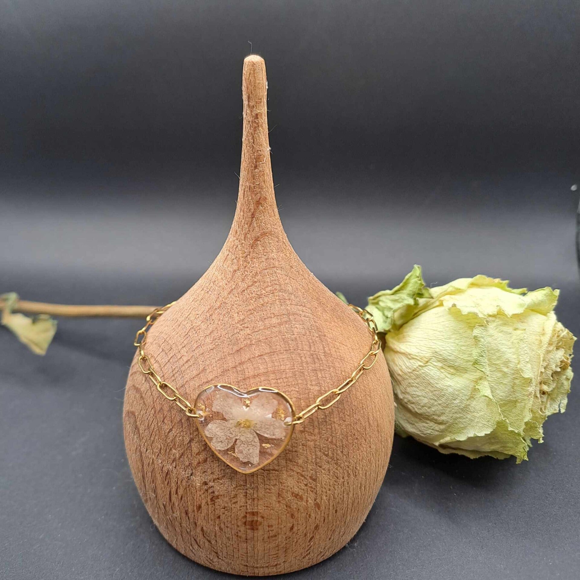 Bien que les fleurs soient séchées, il est important de prendre soin du bracelet pour éviter que les fleurs ne s'abîment ou ne se décolore.